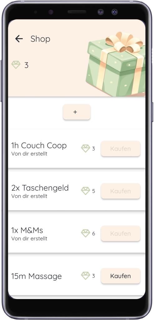 Diamanten können gegen echte Belohnungen eingetauscht werden! Die Belohnungen werden von Euch erstellt: also überlegt euch, womit ihr euren Engsten eine Freude machen könnt!
